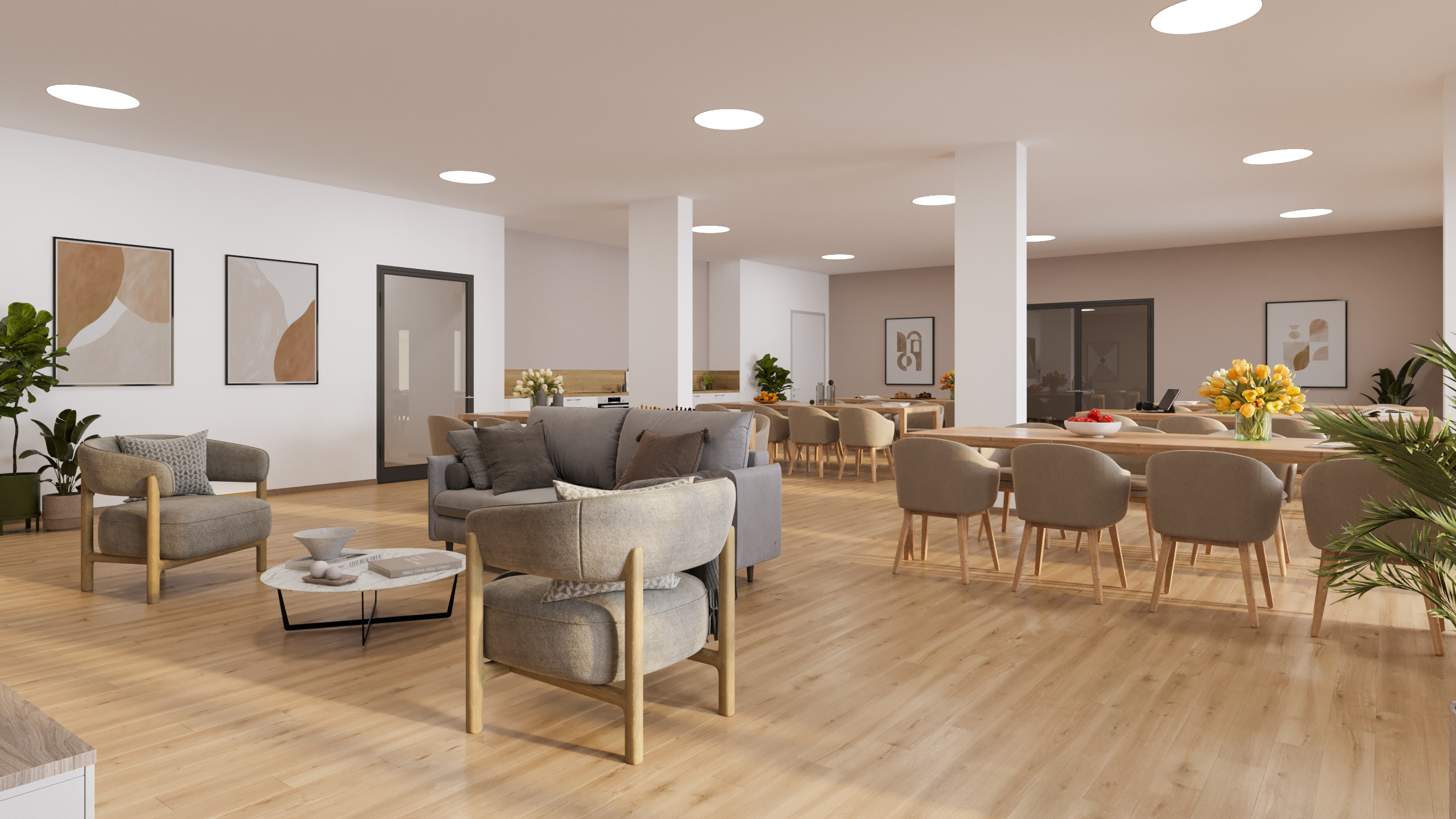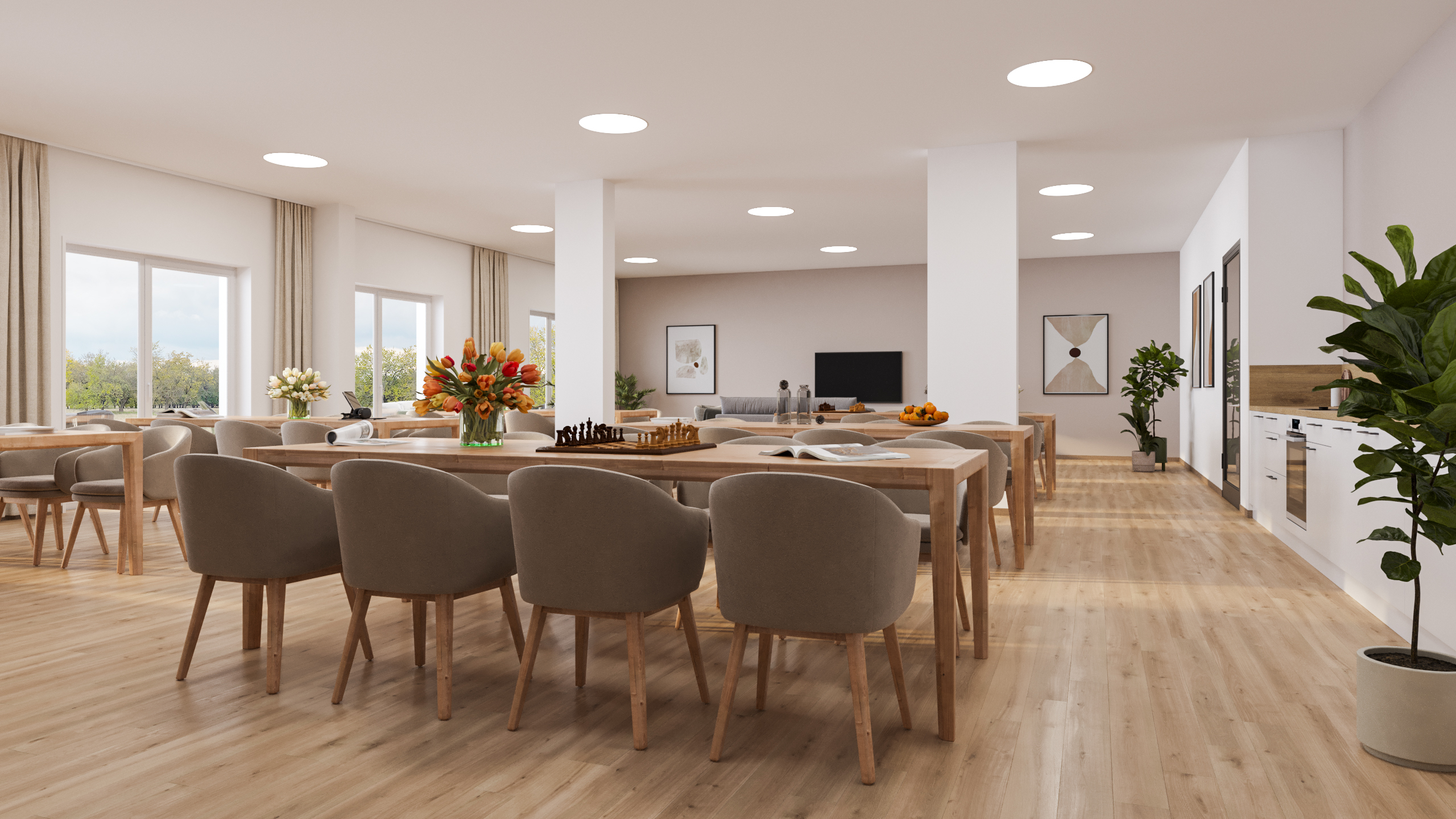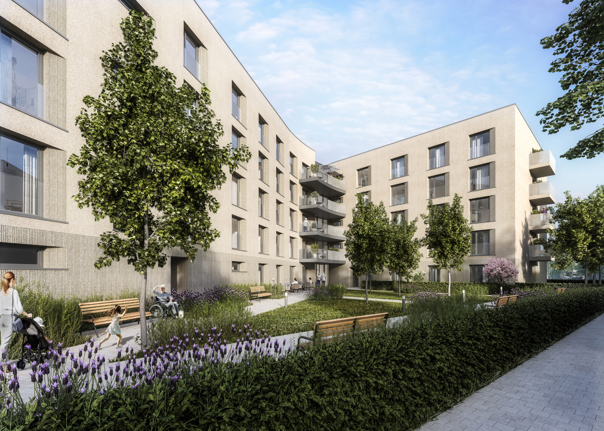 Die Seniorenwohnanlage umfasst 76 komfortable Wohnungen, die barrierefrei gestaltet und mit großflächigen Fensterelementen für viel Licht ausgestattet sind. Jede Wohnung verfügt über einen eigenen Balkon, während ein Aufzug den Zugang erleichtert. Die Gestaltung der Wohnungen und Gemeinschaftsbereiche unterstützt ein selbstbestimmtes Leben mit hohem Wohnkomfort.