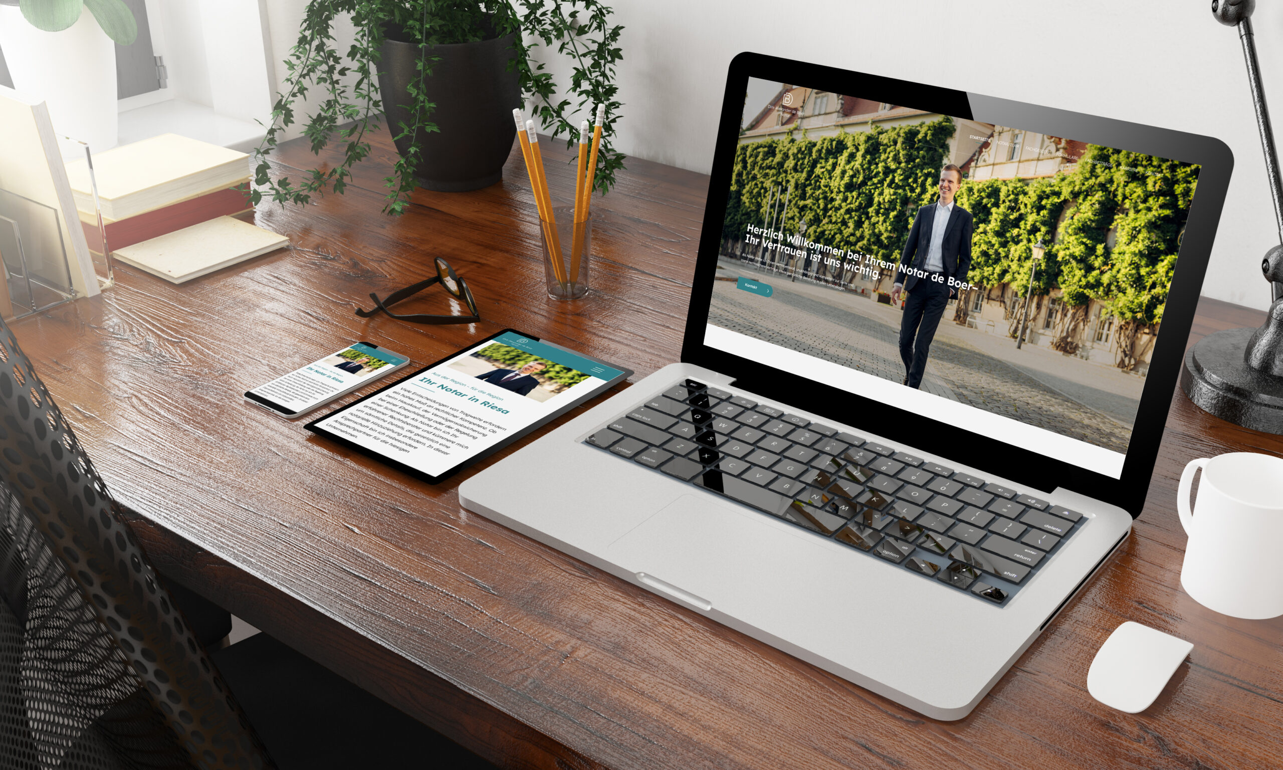 Moderne Websites müssen heute nicht nur inhaltlich überzeugen, sondern auch funktional auf allen Geräten funktionieren. Responsive Design sorgt dafür, dass die Seite auf Desktop, Tablet und Smartphone optimal dargestellt wird – für Mandanten, die sich schnell informieren oder unterwegs Kontakt aufnehmen möchten. Insgesamt unterstreicht die Webseite die Werte von Notar Dirk-Alexander de Boer: Professionalität, Zuverlässigkeit und persönliches Engagement – und das mit einer digitalen Präsenz, die sowohl bestehende als auch neue Mandanten anspricht.