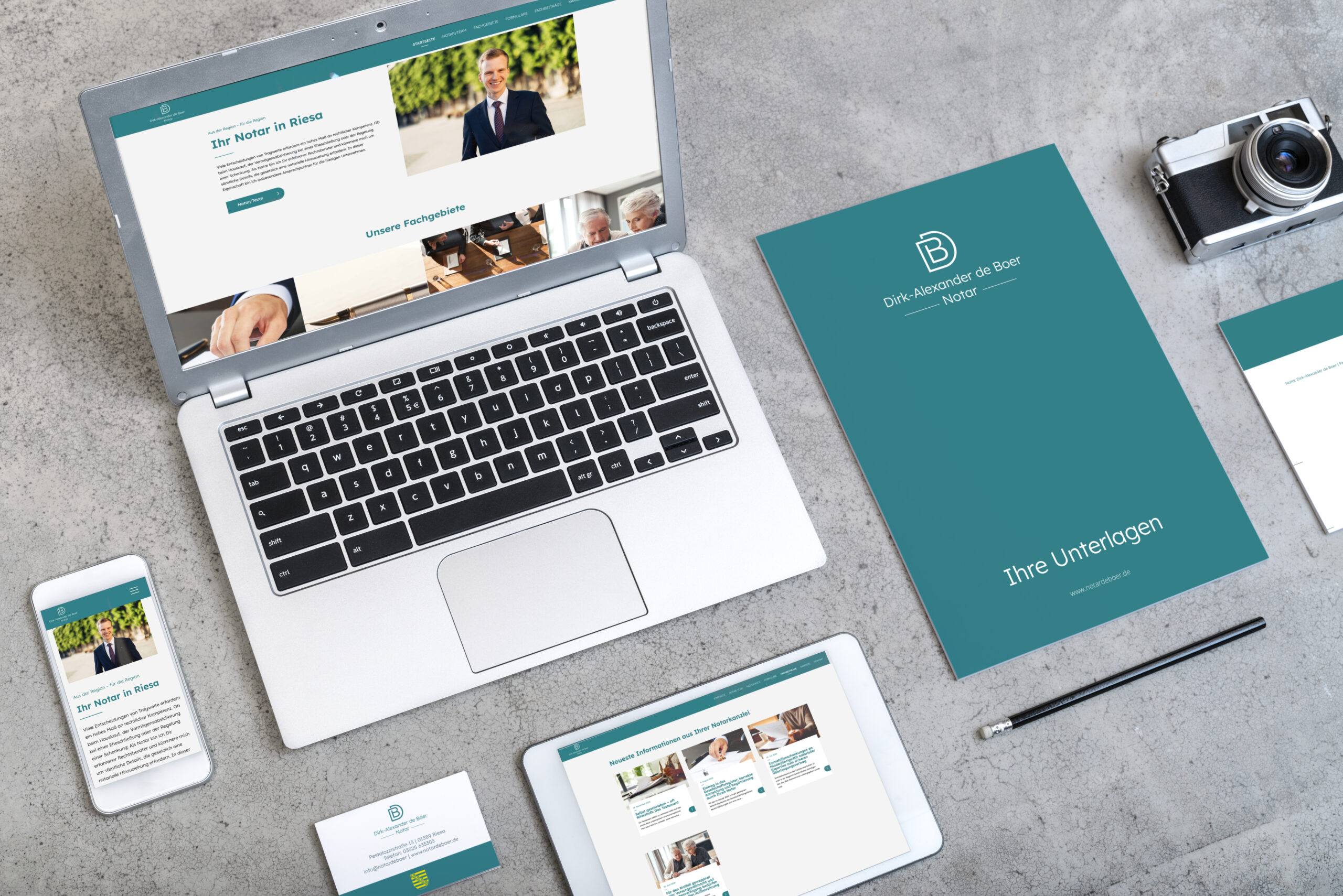 Als Werbeagentur aus Leipzig mit Schwerpunkt auf Immobilien und rechtliche Vorsorge bewegen wir uns täglich an der Schnittstelle zwischen komplexen Sachthemen und verständlicher Kommunikation. Dieses Know-how bringen wir auch in die Präsentation notarieller Kanzleien ein. Für den Juristen Notar Dirk-Alexander de Boer aus Riesa haben wir neben einer Markenentwicklung, eine Webpräsenz gestaltet, die modern, professionell und zugleich persönlich wirkt. Ziel war es, ein Erscheinungsbild zu schaffen, das fachliche Kompetenz vermittelt und zugleich Vertrauen und Nähe transportiert.
